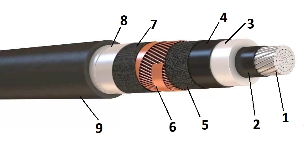- Медный экран с сечением 16 мм2 изготовлен из медной проволоки диаметром от 0,7 до 1,8 мм, скрепленных медной лентой шириной 8 мм и толщиной 0,1 мм. Обеспечивает эффективное экранирование от внешних помех и электрических полей.