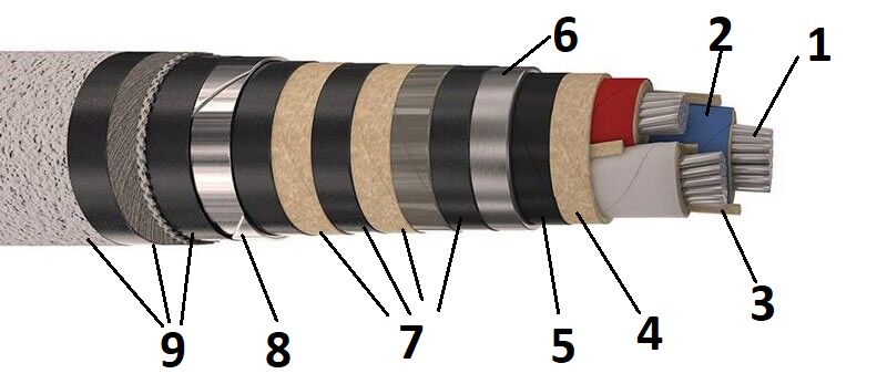 <li>Поясная бумажная изоляция, пропитанная вязким составом. Номинальная толщина изоляционного слоя – 1,25 мм.</li>