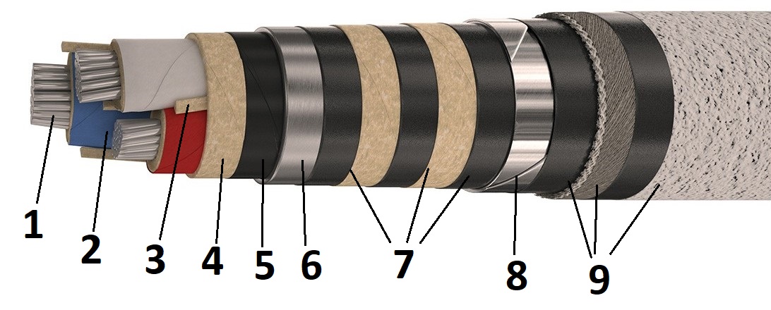 <li>Бумажная изоляция токопроводящих жил, пропитанная вязким изоляционным составом, 2,75 мм толщиной. Маркировка – цифровая или цветная. Она соответствует ГОСТ 18410-73, должна быть устойчивой, нестираемой и различимой. Цветовая выполняется при помощи цветных лент, цифровая наносится тиснением или печатанием. Цифры – 1, 2, 3. Цвет жил – белый или желтый, синий или зеленый, красный или малиновый.</li>