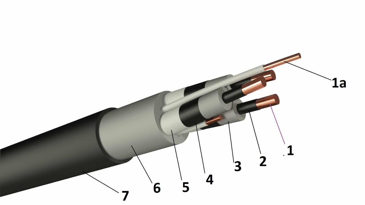 - Многопроволочные токопроводящие жилы из обычной или лужёной меди (класс 5 по ГОСТ 22483-2012). Число жил — от 3 до 5. Основные жилы: 10–150 мм²; жила заземления — 6–50 мм².
